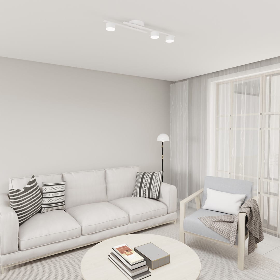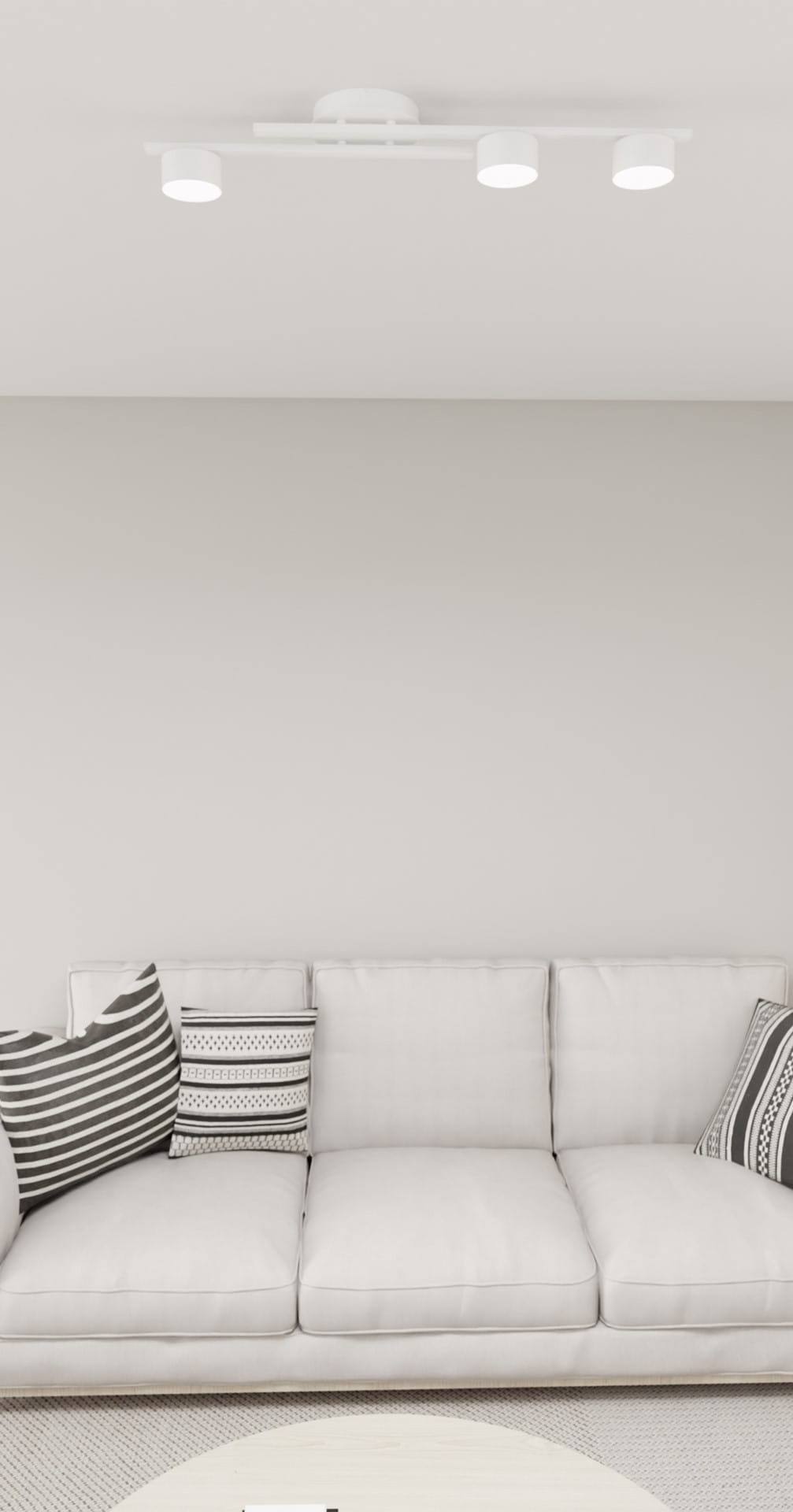lampy 3-punktowe – świetnie sprawdzają się w mniejszych pomieszczeniach, np. w przedpokojach, mniejszych kuchniach czy sypialniach, gdzie ważne jest estetyczne i praktyczne oświetlenie sufitowe;