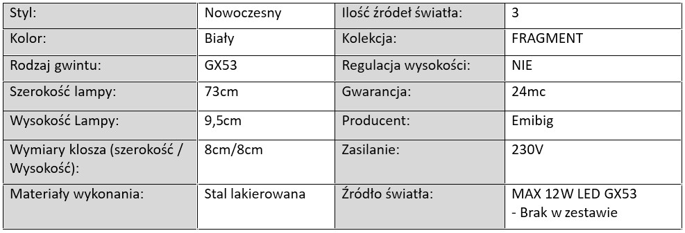 Lampa Sufitowa FRAGMENT Biała / 3 x GX53