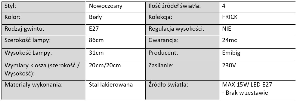 Lampa Sufitowa FRICK Biała / 4 x E27
