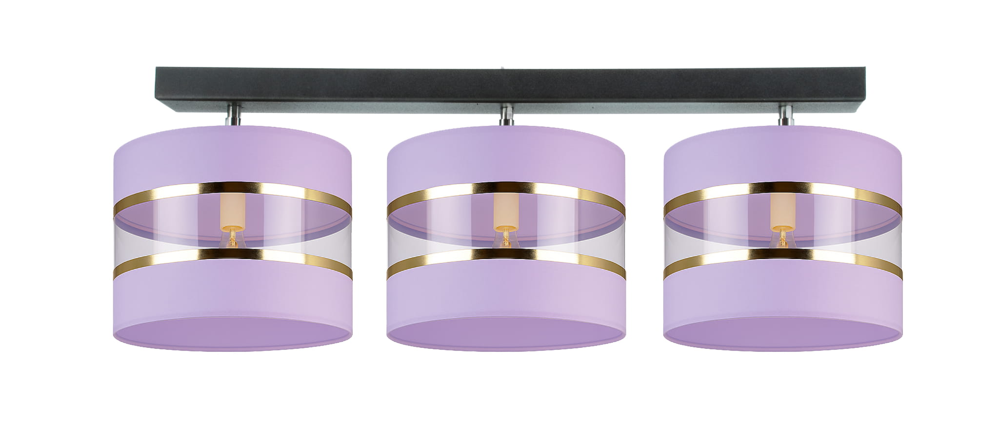 W ofercie znajdują się lampy wiszące, sufitowe, kinkiety, lampy nocne oraz podłogowe – wszystkie utrzymane w spójnej, eleganckiej stylistyce. Charakterystyczny wrzosowy abażur wykonany z wysokiej jakości tkaniny, w połączeniu z transparentną folią i złotym paskiem, tworzy wyjątkowy efekt światła, który wprowadza do wnętrza ciepły, nastrojowy klimat.