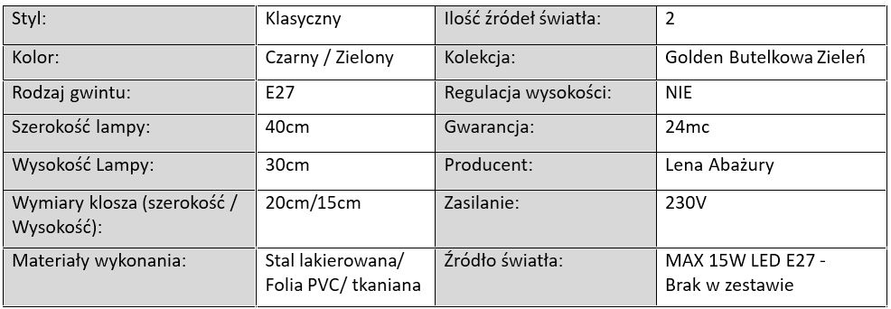 Kolekcja Golden Butelkowa Zieleń to propozycja dla osób, które szukają połączenia ponadczasowej elegancji z modnym, głębokim kolorem. Lampy z tej serii łączą w sobie styl, funkcjonalność i wyrafinowanie, dzięki czemu stanowią nie tylko źródło światła, ale również wyjątkowy element dekoracyjny w każdym wnętrzu.