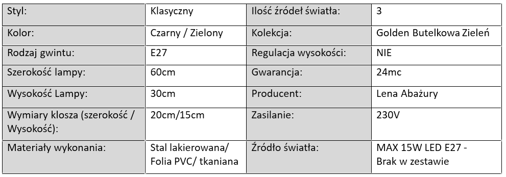 Kolekcja Golden Butelkowa Zieleń to propozycja dla osób, które szukają połączenia ponadczasowej elegancji z modnym, głębokim kolorem. Lampy z tej serii łączą w sobie styl, funkcjonalność i wyrafinowanie, dzięki czemu stanowią nie tylko źródło światła, ale również wyjątkowy element dekoracyjny w każdym wnętrzu.