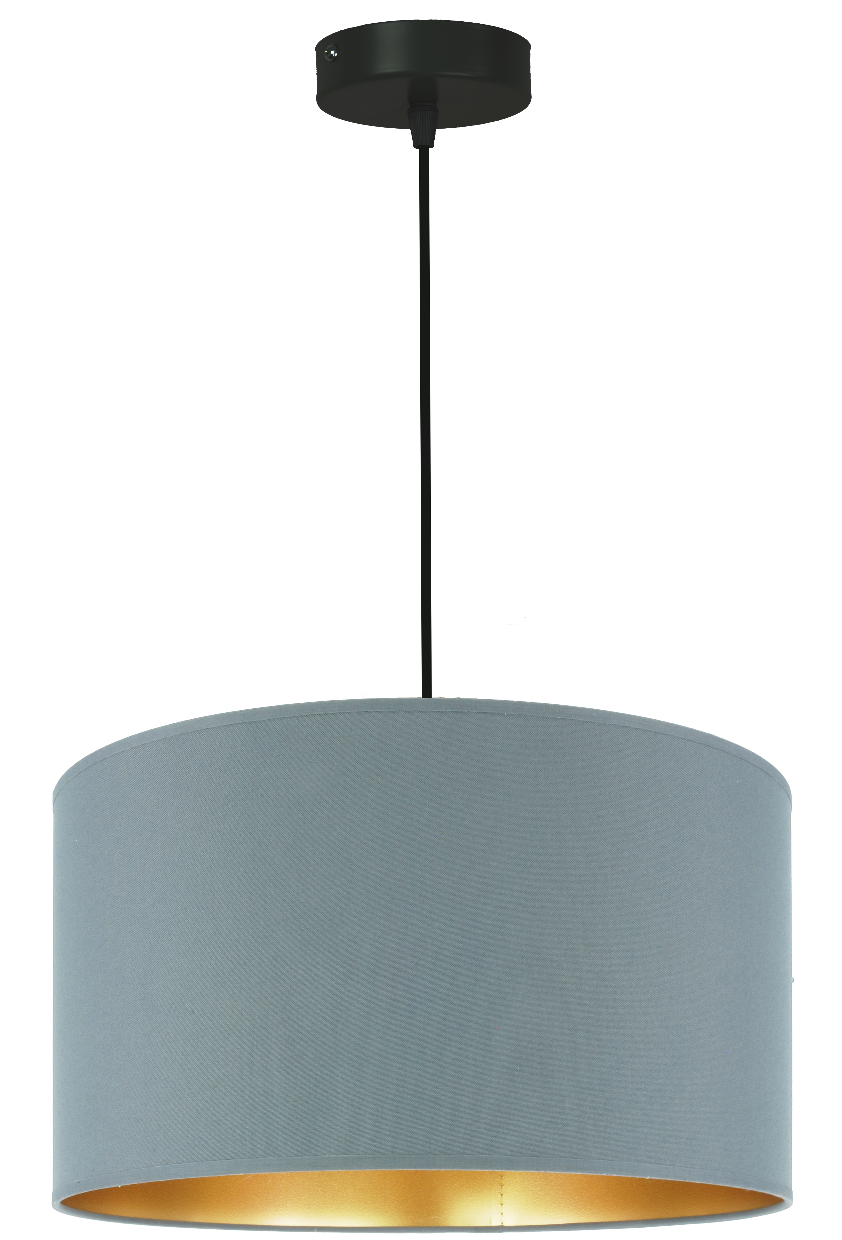 Ta lampa to połączenie elegancji i nowoczesności. Szare wykończenie abażuru w połączeniu z połyskującą złotą folią wewnątrz tworzy efektowne kontrasty, które dodają wnętrzu charakteru. Zewnętrzna czerń wprowadza nutę klasyki i tajemniczości, podczas gdy złote wnętrze delikatnie odbija światło, tworząc ciepłą, przytulną atmosferę.