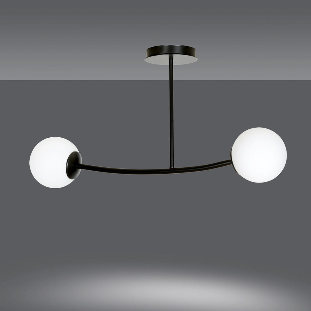 Lampa Sufitowa HALLDOR Czarna KLOSZ Opal / 2xE14