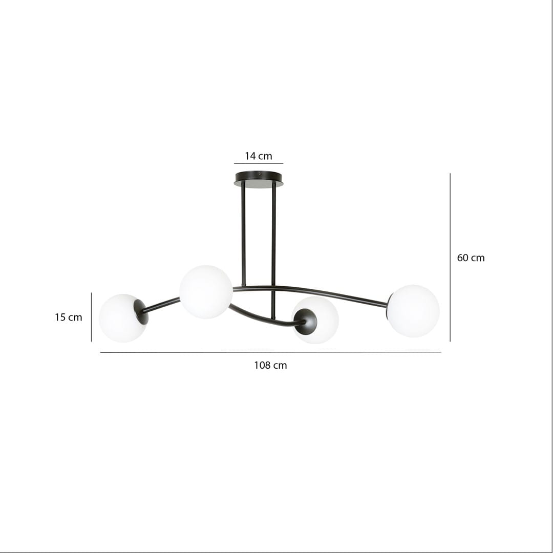Lampa Sufitowa HALLDOR Czarna KLOSZ Opal / 4xE14