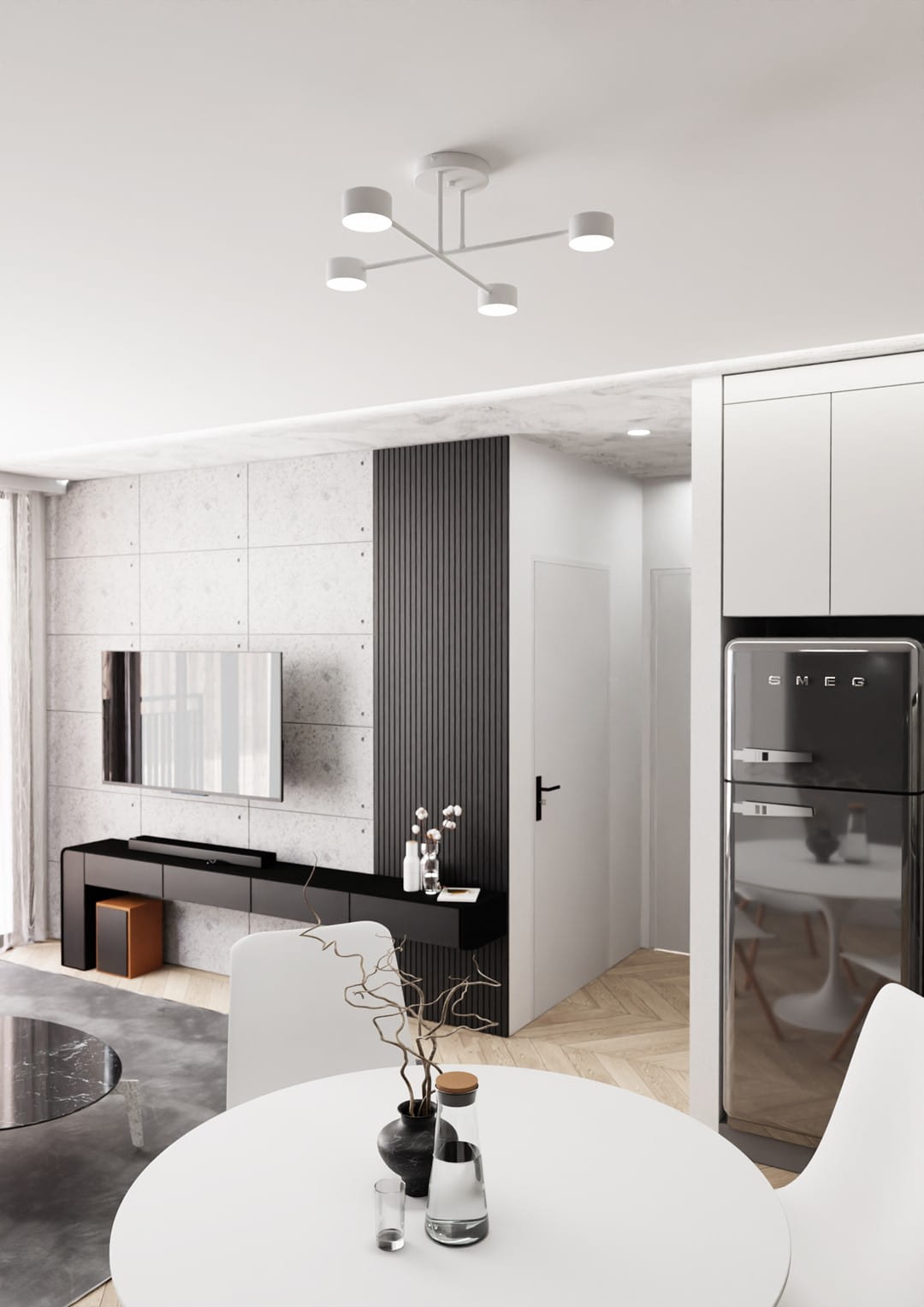 Salon – jako główne źródło światła w centrum wnętrza.