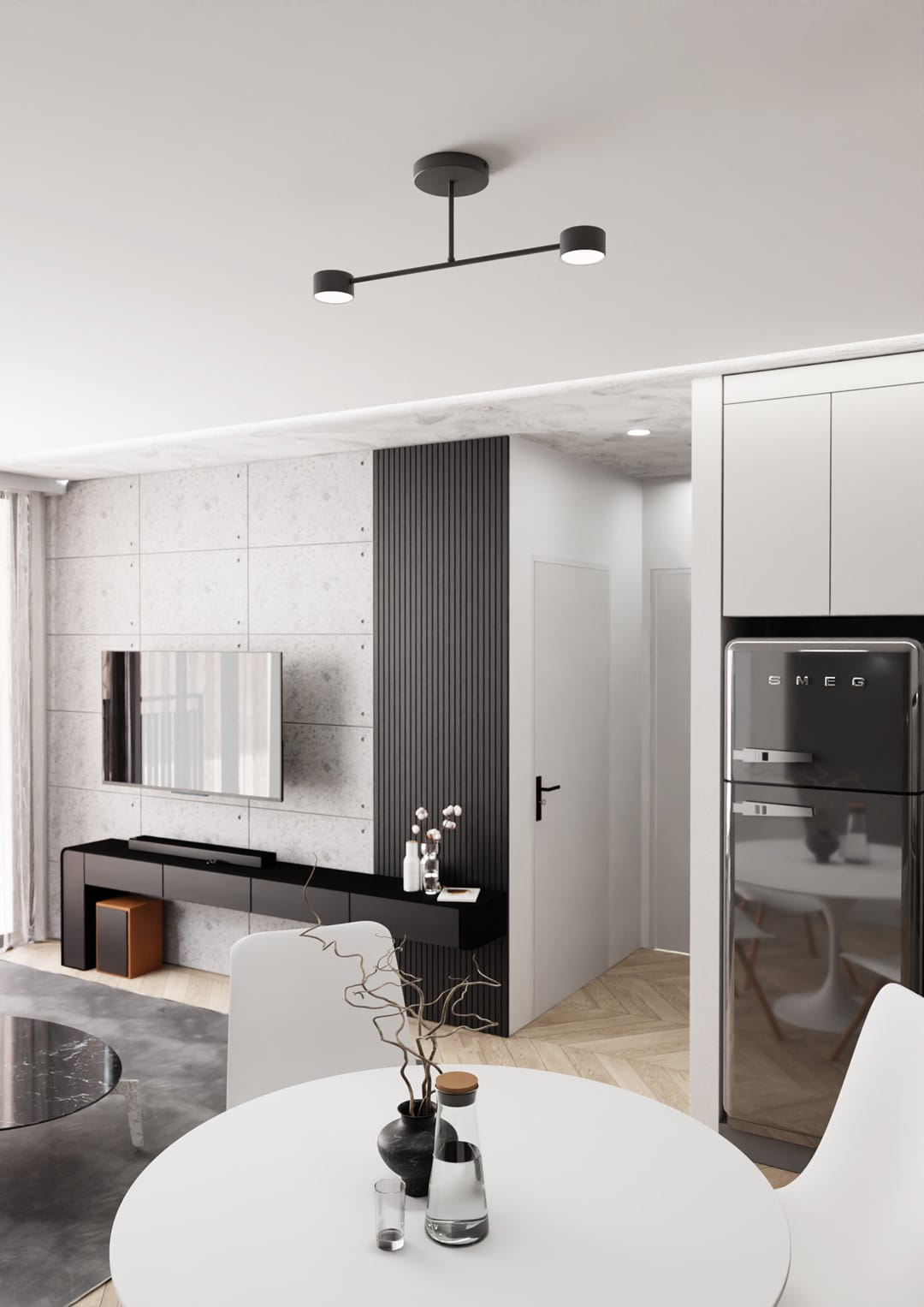 Salon – jako główne źródło światła w centrum wnętrza.