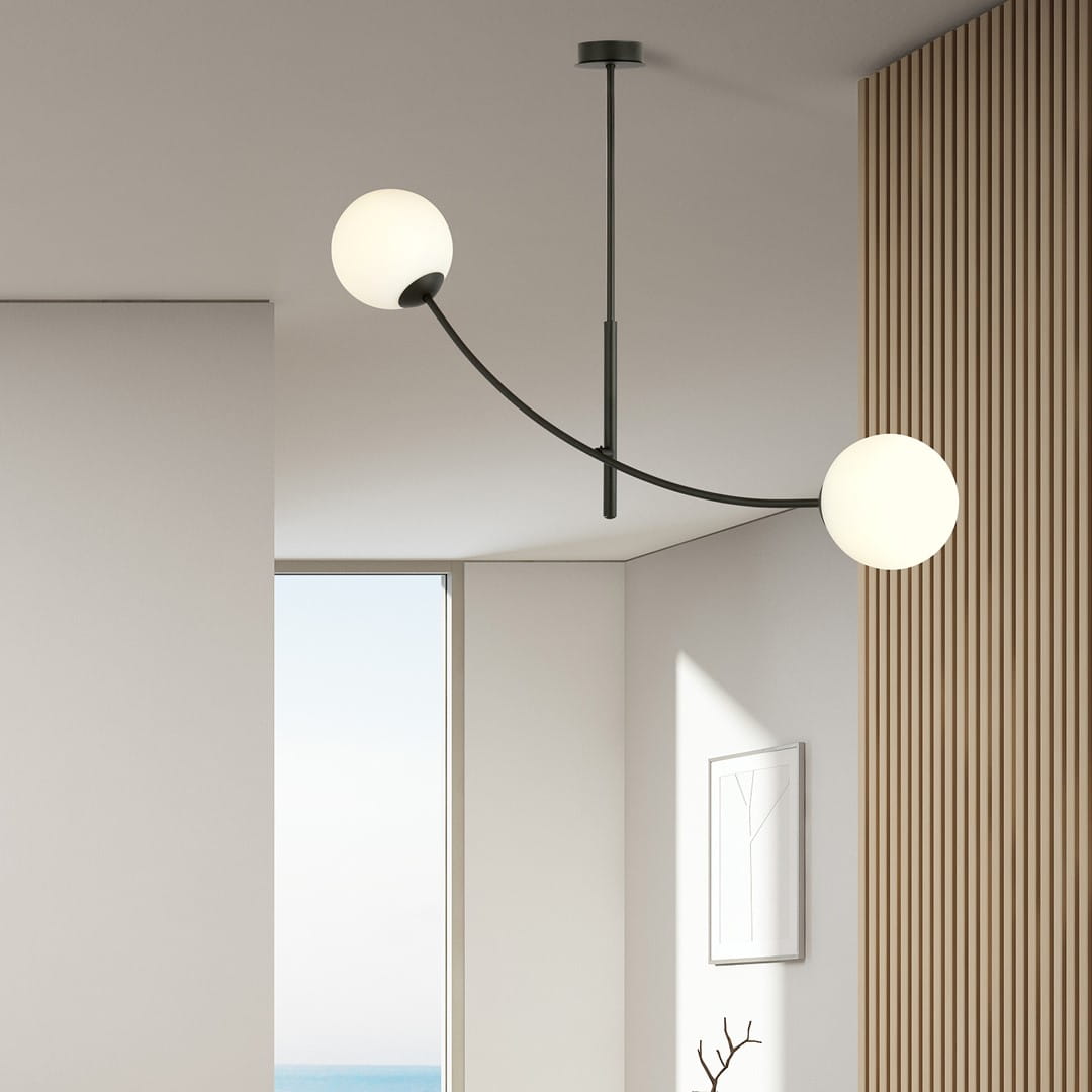 Lampa Sufitowa HUNTER Czarna Klosz Opal / 2xE14