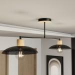 Model 3-punktowy to propozycja do większych przestrzeni – nad stołem w jadalni, wyspą kuchenną czy w salonie. Drewniane detale ocieplają aranżację, a metalowe klosze w czerni lub bieli dodają całości nowoczesnego charakteru.