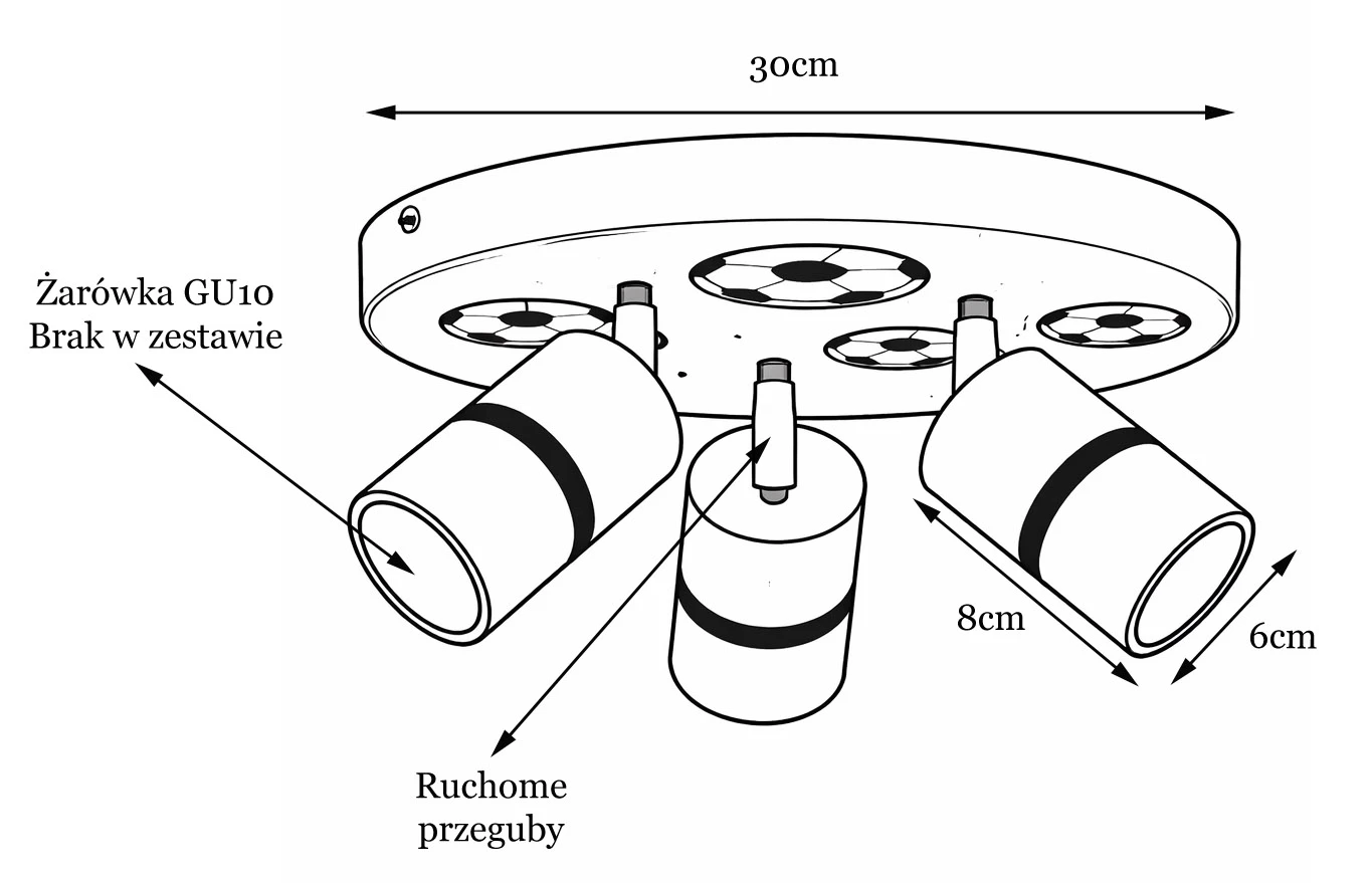 Lampa Sufitowa Plafon Celia Football Dziecęca Czarna / 3xGU10