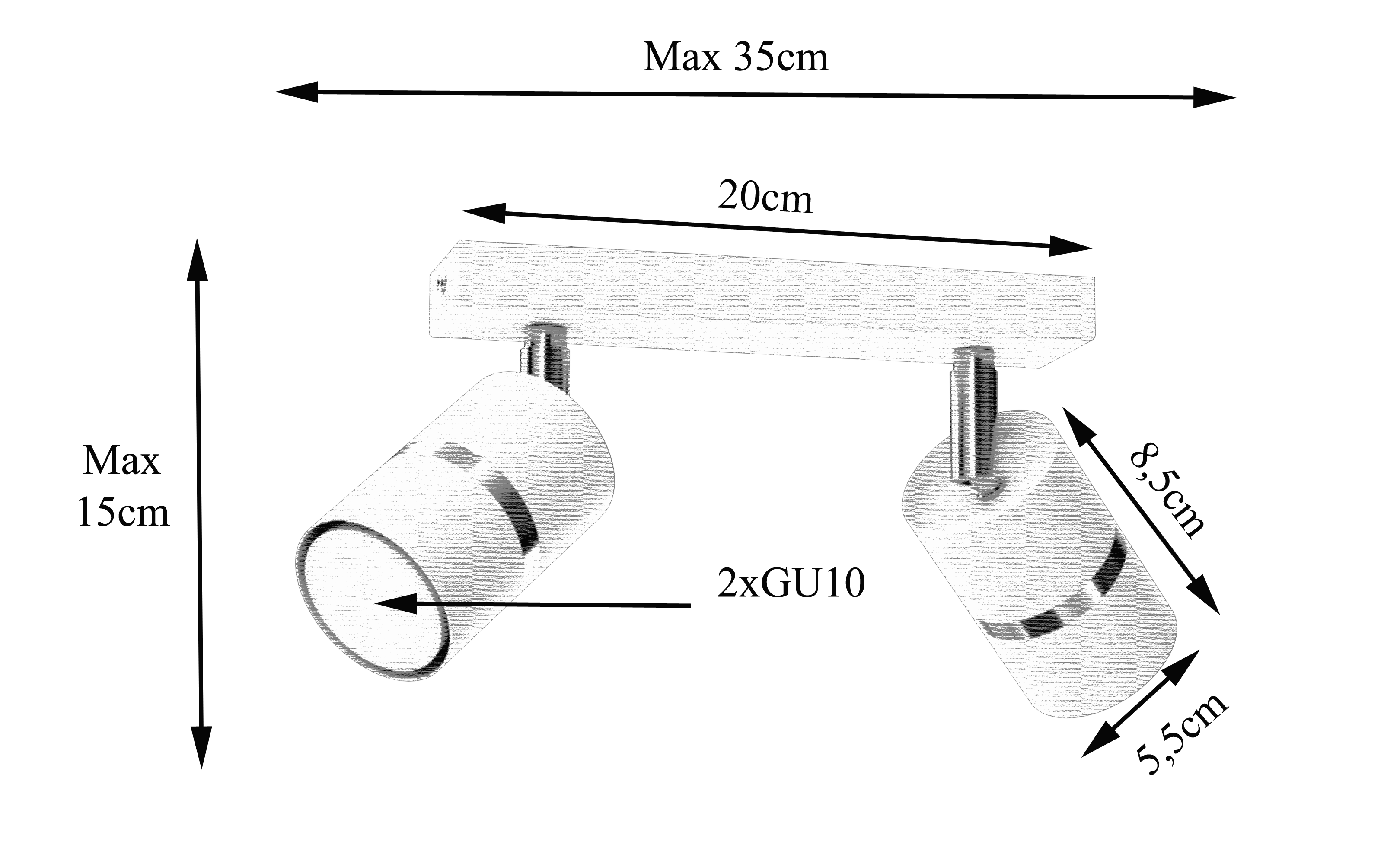 Lampa została przystosowana do żarówek GU10, dzięki czemu można dopasować moc oraz barwę światła do własnych potrzeb.