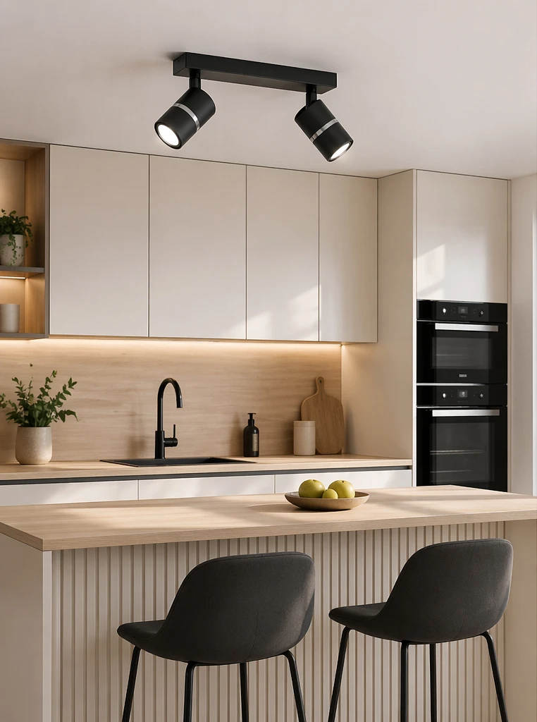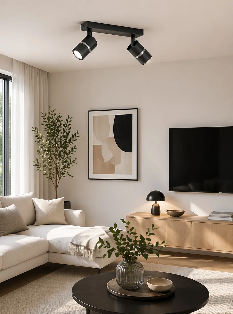 Dzięki ruchomym głowicom możesz dowolnie ustawić kierunek padania światła, co sprawia, że lampa doskonale sprawdzi się jako oświetlenie punktowe, akcentowe lub główne. Idealna do podkreślenia wybranych elementów wnętrza, takich jak obrazy, dekoracje czy strefy użytkowe.