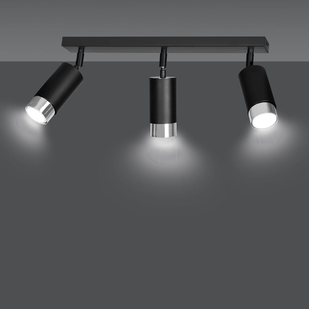 Lampa Sufitowa SPOT HIRO Czarno Srebrna / 3xGU10