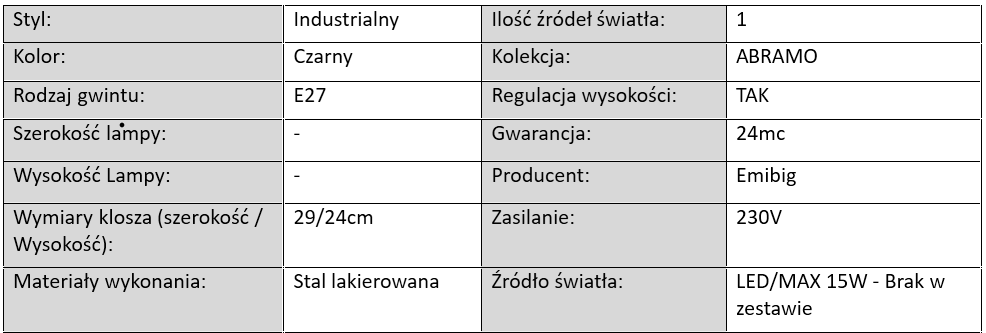 Lampa Wisząca ABRAMO 1 BLACK