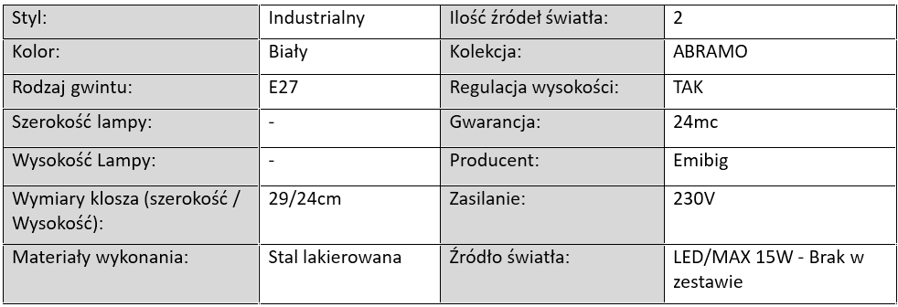 ABRAMO to seria wyjątkowych lamp o uniwersalnym designie, idealnych do każdego wnętrza. Lampy te charakteryzują się nowoczesnym wyglądem, który doskonale wpasuje się w różne style wnętrzarskie. Dzięki możliwości montażu do ściany oraz długiemu przewodowi, zapewniają one wiele opcji aranżacyjnych. Funkcjonalność serii ABRAMO idzie w parze z oryginalnym charakterem i tworzy harmonijny wystrój, który cieszy oko. Produkowane w Polsce, gwarantują najwyższą jakość wykonania. Dostępne w wersji czarnej lub białej, warianty z 1, 2 lub 3 źródłami światła.