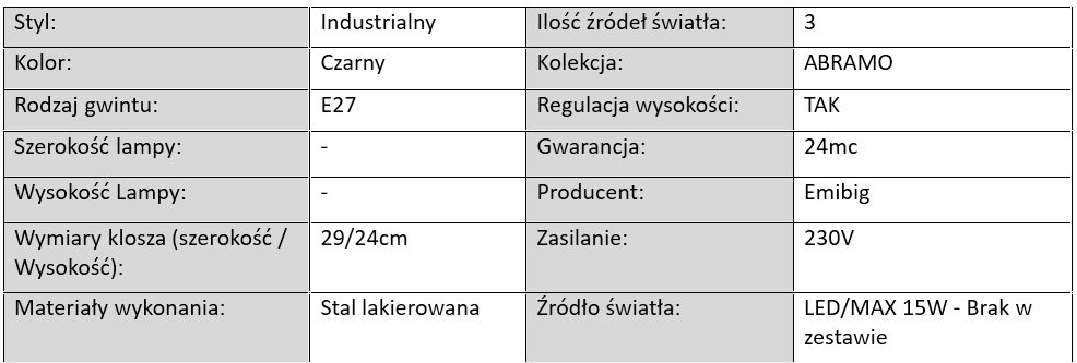 Lampa Wisząca ABRAMO 3 BLACK