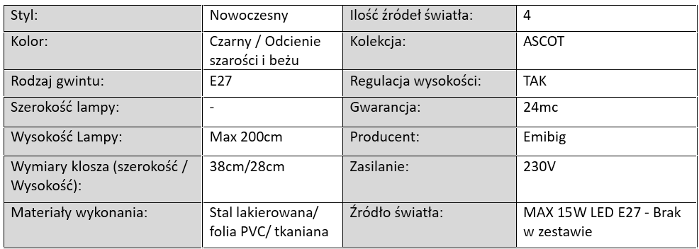 Odkryj wyjątkową kolekcję lamp ASCOT, która łączy przytulność domowego oświetlenia z eleganckim designem. Każda lampa wyposażona jest w stylowy abażur z tkaniny o subtelnej strukturze, dostępny w beżowej i szarej tonacji – idealnej do wnętrz w stylu skandynawskim, nowoczesnym, a nawet klasycznym.