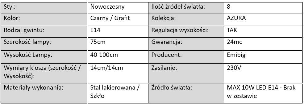 Lampa Wisząca AZURA Klosz Grafit / 8xE14