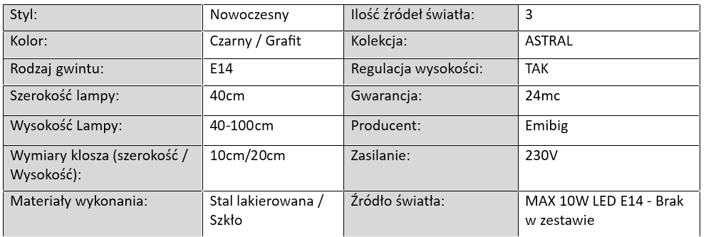 Lampa Wisząca Astral Klosz Grafit / 3xE14