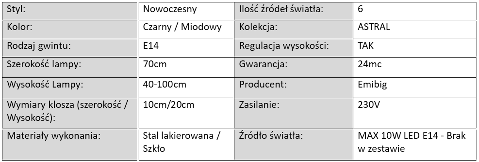 Lampa Wisząca Astral Klosz Miodowy / 6xE14