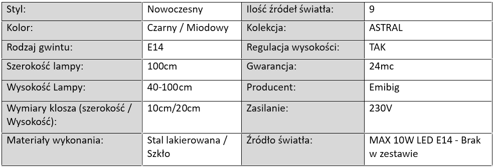 Lampa Wisząca Astral Klosz Miodowy / 9xE14