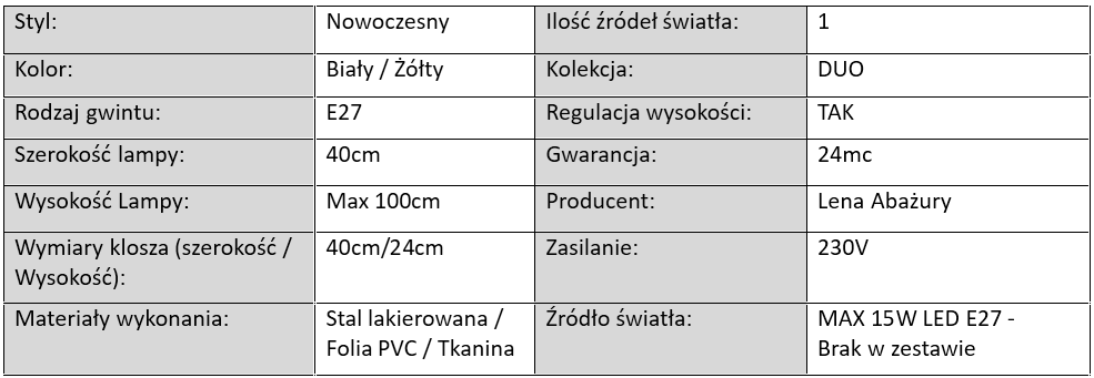 Nowoczesna lampa wisząca biało-żółta to połączenie świeżego designu z funkcjonalnością, które wnosi do wnętrza radość, energię i przytulność. Jej pogodna kolorystyka sprawia, że doskonale odnajduje się w różnych przestrzeniach – od kuchni po jadalnię – ale szczególnie świetnie sprawdza się jako oświetlenie do pokoju dziecka.
