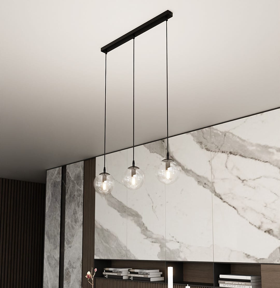 Lampa Wisząca COSMO Czarna Klosz Transparentny / 3 x E14