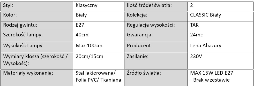 Charakterystyka lamp z kolekcji Classic Biały:
