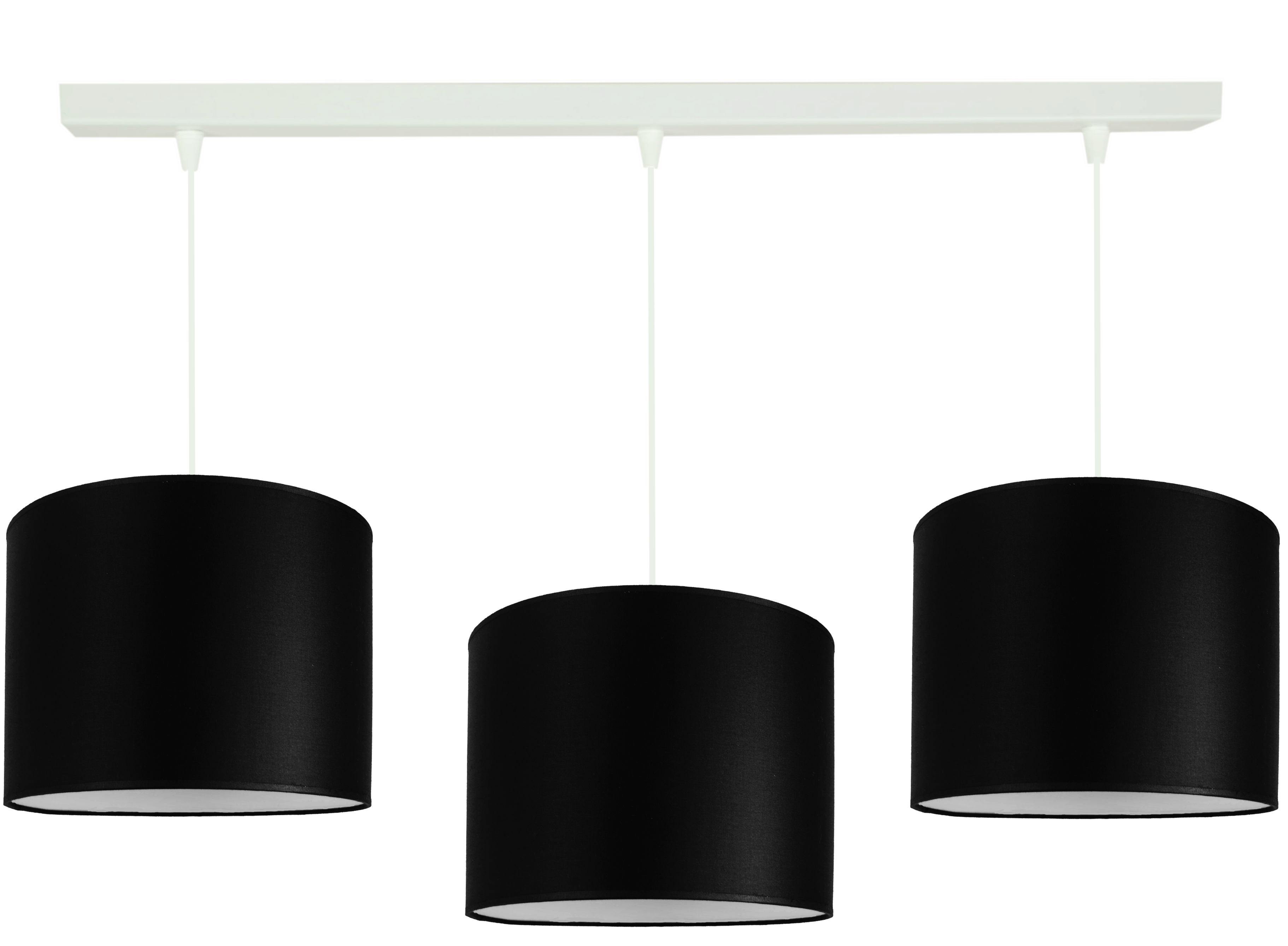 Abażury wykonano z czarnej tkaniny, która elegancko kontrastuje z białą folią wewnątrz, zapewniając efektowne rozproszenie światła i ciepłą atmosferę w pomieszczeniu. To doskonały wybór zarówno do wnętrz nowoczesnych, industrialnych, jak i tych w stylu loft czy glamour.