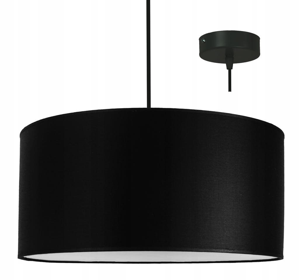 Abażury wykonano z czarnej tkaniny, która elegancko kontrastuje z białą folią wewnątrz, zapewniając efektowne rozproszenie światła i ciepłą atmosferę w pomieszczeniu. To doskonały wybór zarówno do wnętrz nowoczesnych, industrialnych, jak i tych w stylu loft czy glamour.