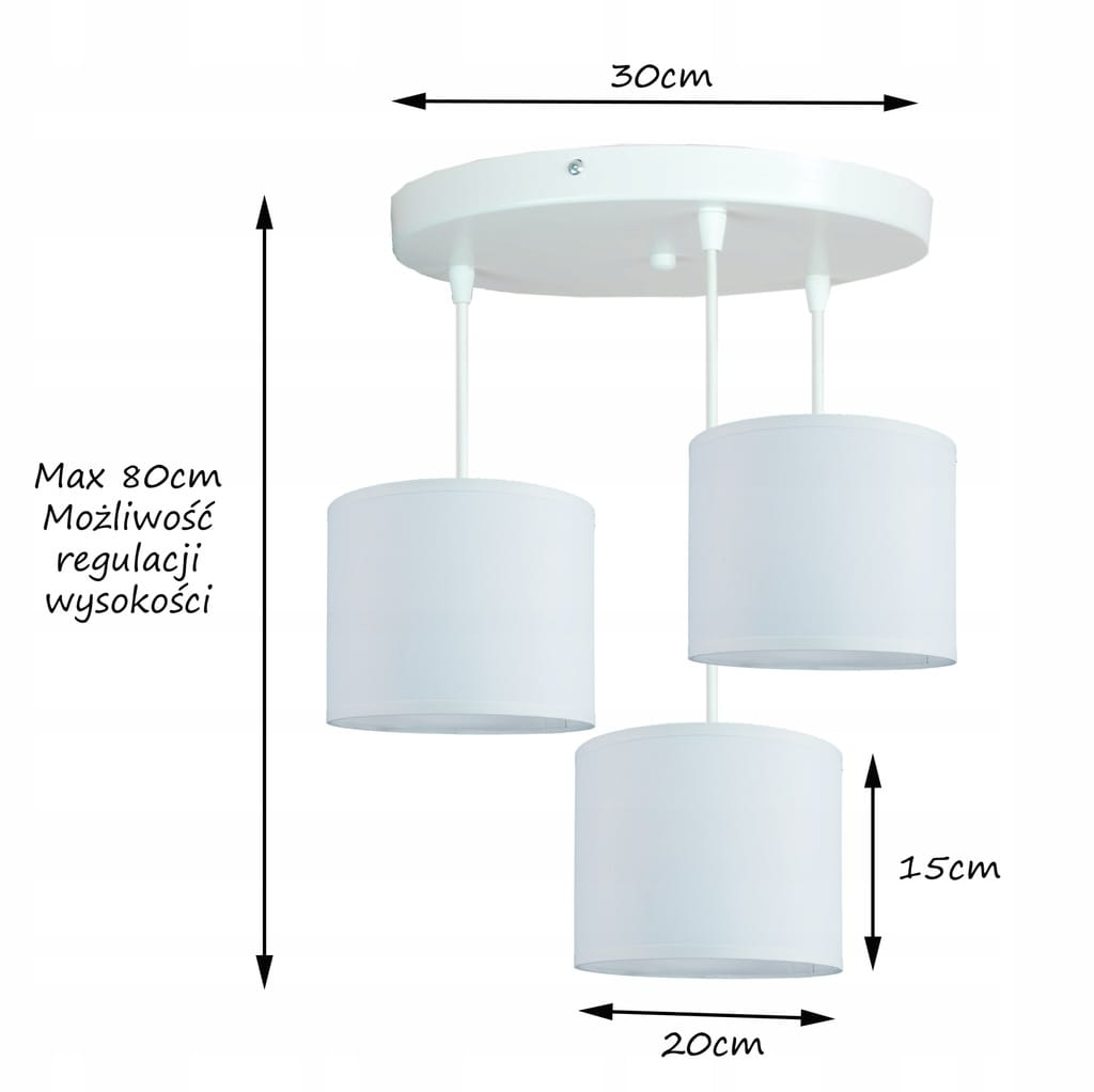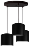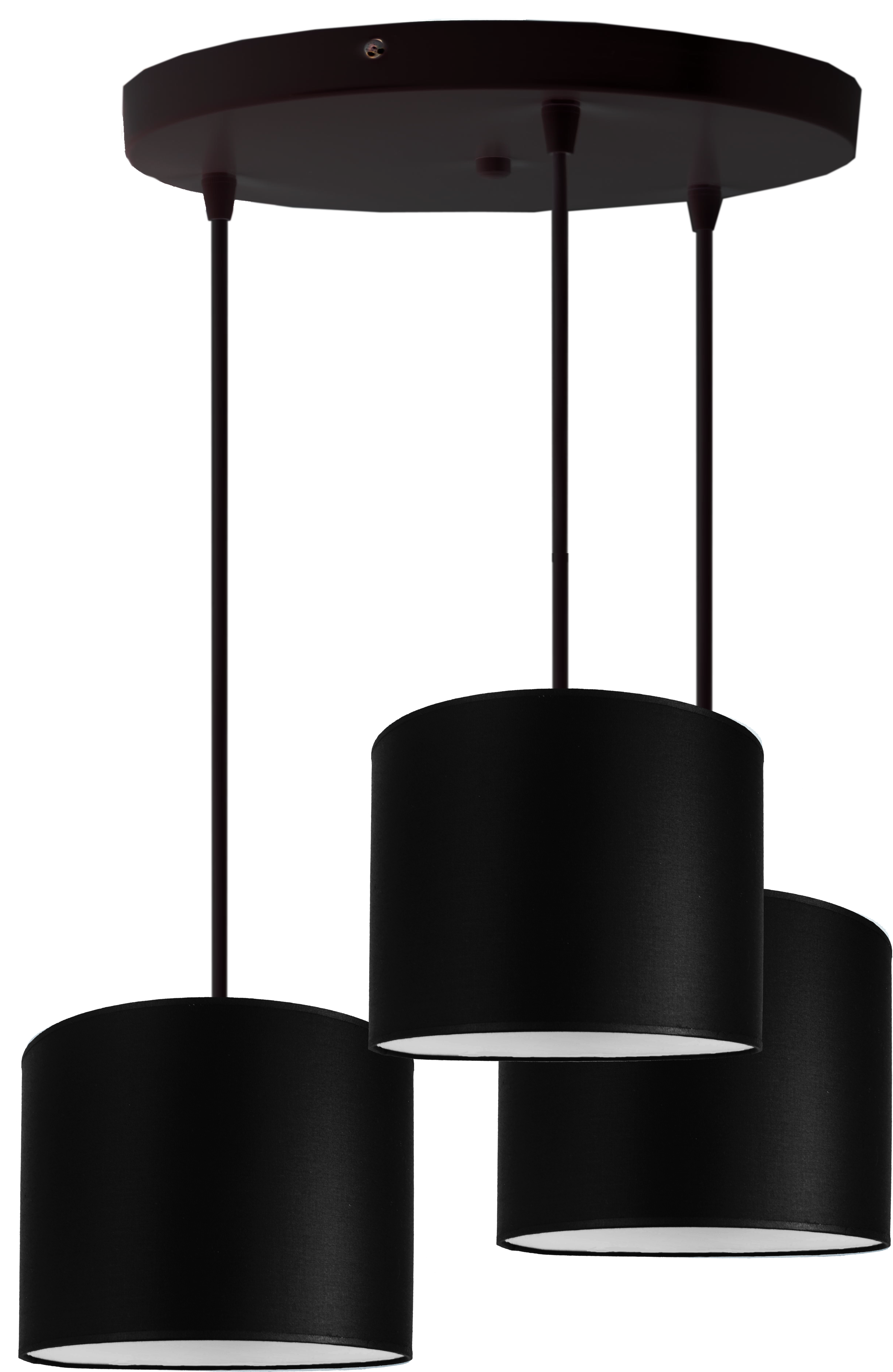 Abażury wykonano z czarnej tkaniny, która elegancko kontrastuje z białą folią wewnątrz, zapewniając efektowne rozproszenie światła i ciepłą atmosferę w pomieszczeniu. To doskonały wybór zarówno do wnętrz nowoczesnych, industrialnych, jak i tych w stylu loft czy glamour.