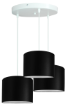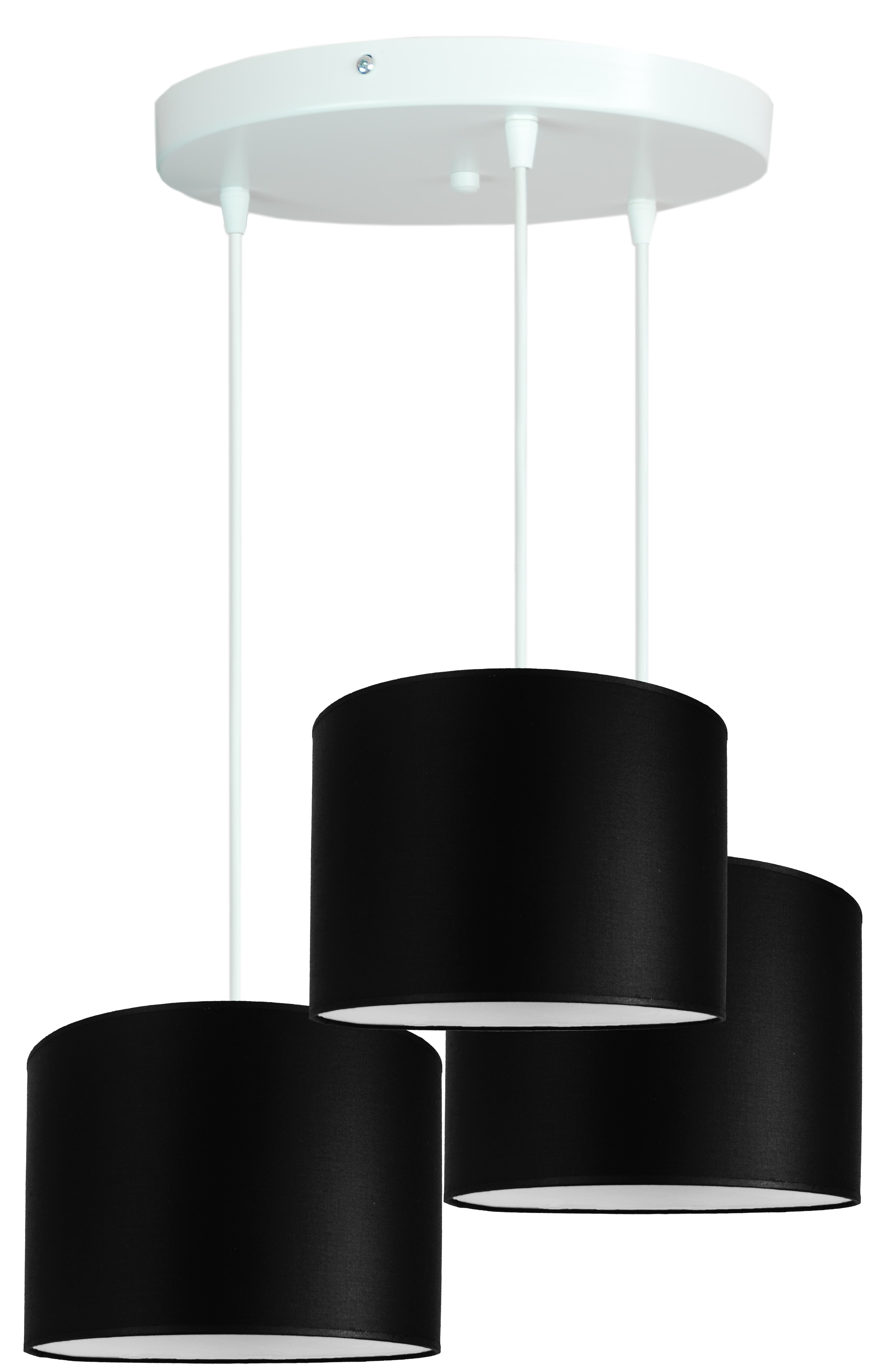Abażury wykonano z czarnej tkaniny, która elegancko kontrastuje z białą folią wewnątrz, zapewniając efektowne rozproszenie światła i ciepłą atmosferę w pomieszczeniu. To doskonały wybór zarówno do wnętrz nowoczesnych, industrialnych, jak i tych w stylu loft czy glamour.