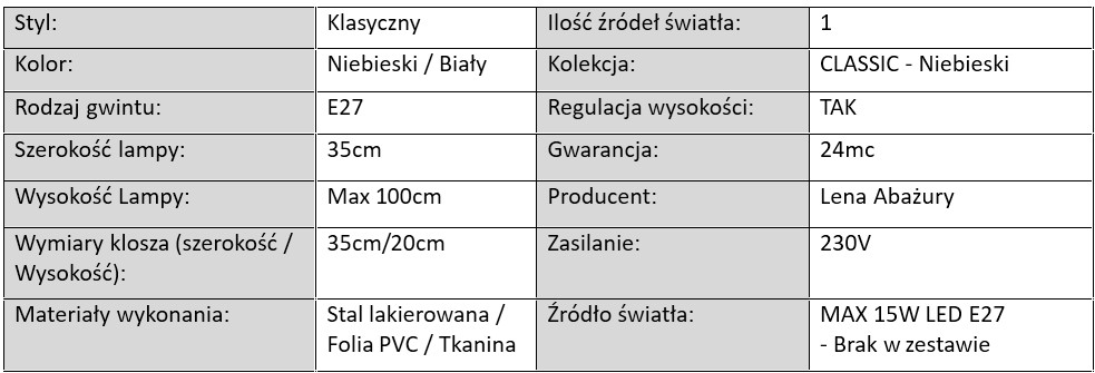 Kolekcja lamp CLASSIC – Niebieski „Chaber”
