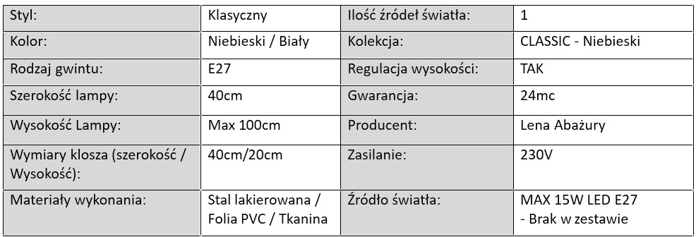 Kolekcja lamp CLASSIC – Niebieski „Chaber”