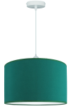 Lampy z serii Classic Butelkowa Zieleń wykonano z wysokiej jakości materiałów. Abażury pokryte są tkaniną w modnym odcieniu butelkowej zieleni, pod którą znajduje się biała folia PVC – zapewnia to równomierne, przyjemne dla oka rozproszenie światła. Całość uzupełniają metalowe stelaże w dwóch wersjach kolorystycznych: klasycznej bieli lub głębokiej czerni, co umożliwia idealne dopasowanie lamp do stylu wnętrza.