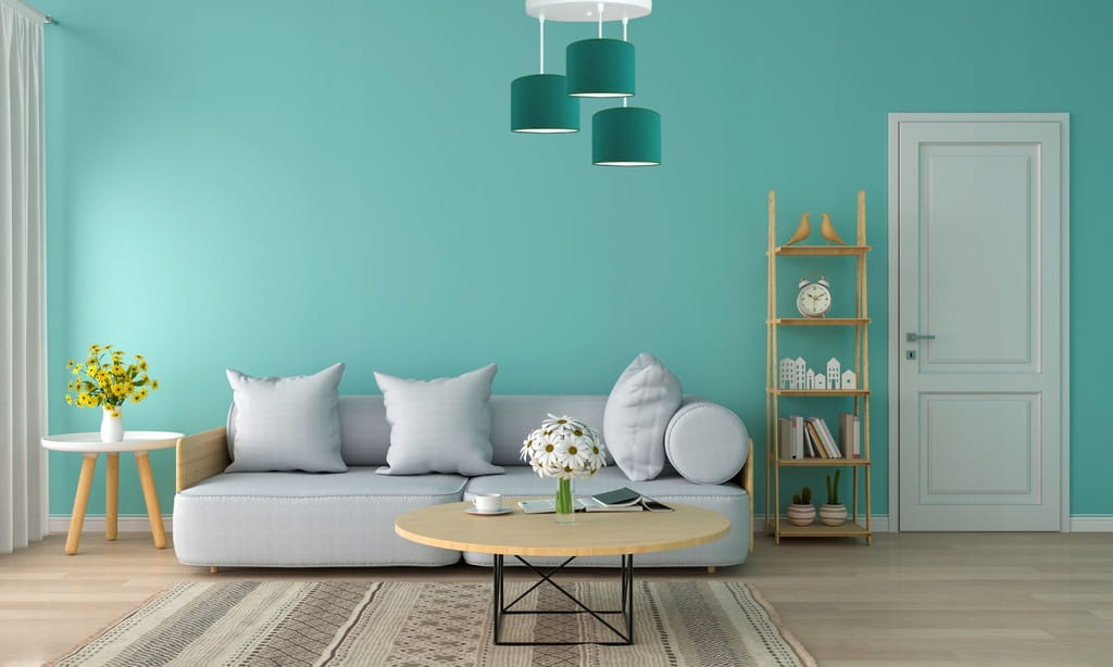 Modny kolor abażurów – butelkowa zieleń na białej folii PVC daje piękny efekt świetlny.