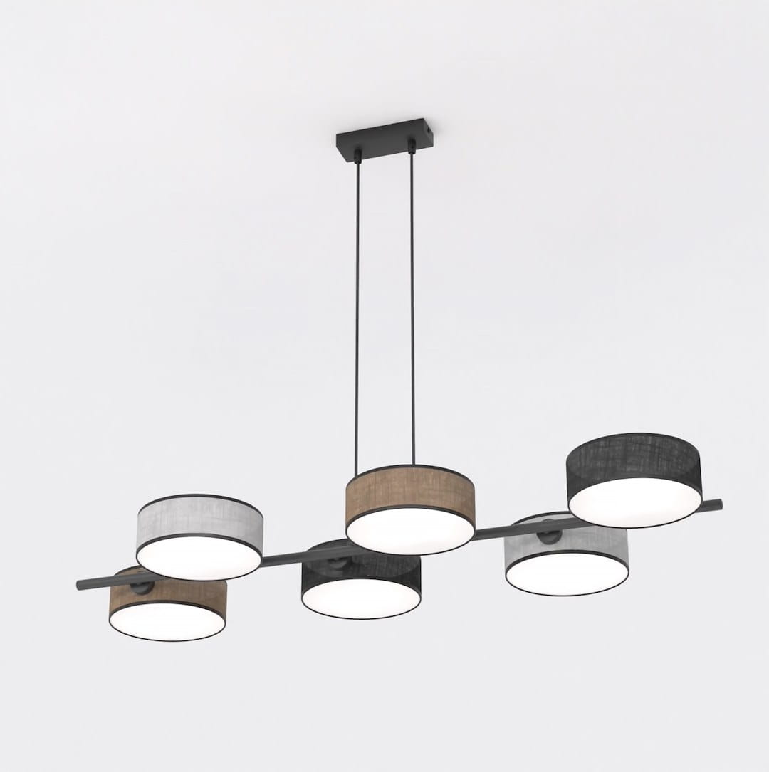 Wszystkie modele z kolekcji DRUMZ wyposażone są w oprawki E14, co daje szerokie możliwości doboru źródeł światła – od tradycyjnych żarówek, po nowoczesne LED-y. Materiałowe klosze dostępne są w modnych wariantach kolorystycznych: czarny, szary, rattan oraz brązowy. Taka paleta pozwala łatwo dopasować lampy do różnych aranżacji – od surowych, industrialnych wnętrz po przytulne przestrzenie w stylu boho.