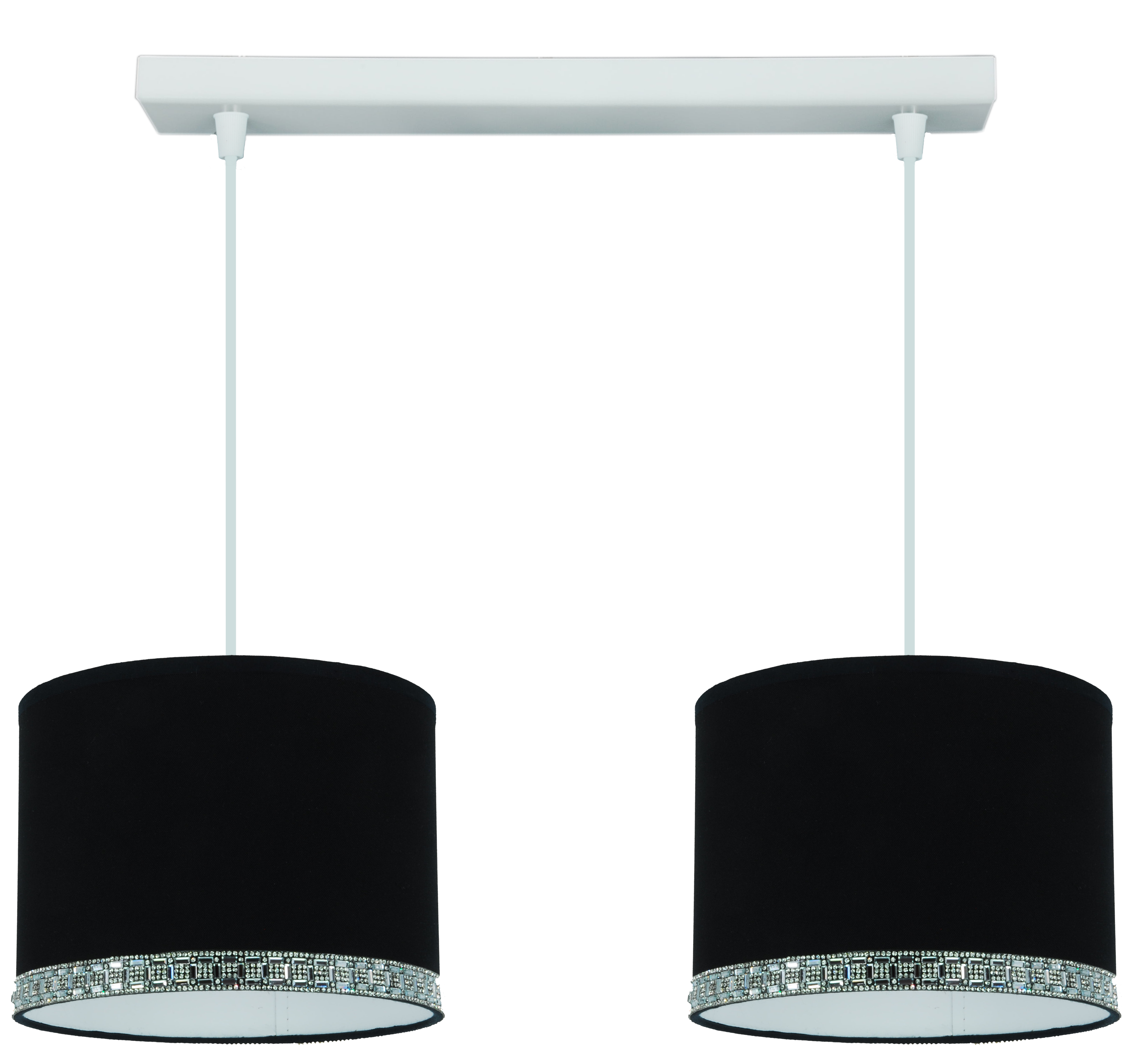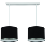 Każda lampa z tej kolekcji została wyposażona w elegancki abażur w kolorze głębokiej czerni, wykończony białą folią wewnętrzną, która skutecznie odbija światło i nadaje wnętrzu przyjemnej jasności. Dolna krawędź abażura ozdobiona jest dekoracyjnym paskiem z połyskujących kryształków, które efektownie błyszczą zarówno w świetle dziennym, jak i sztucznym. To idealne rozwiązanie dla osób szukających oświetlenia z nutą glamour lub nowoczesnej elegancji.