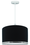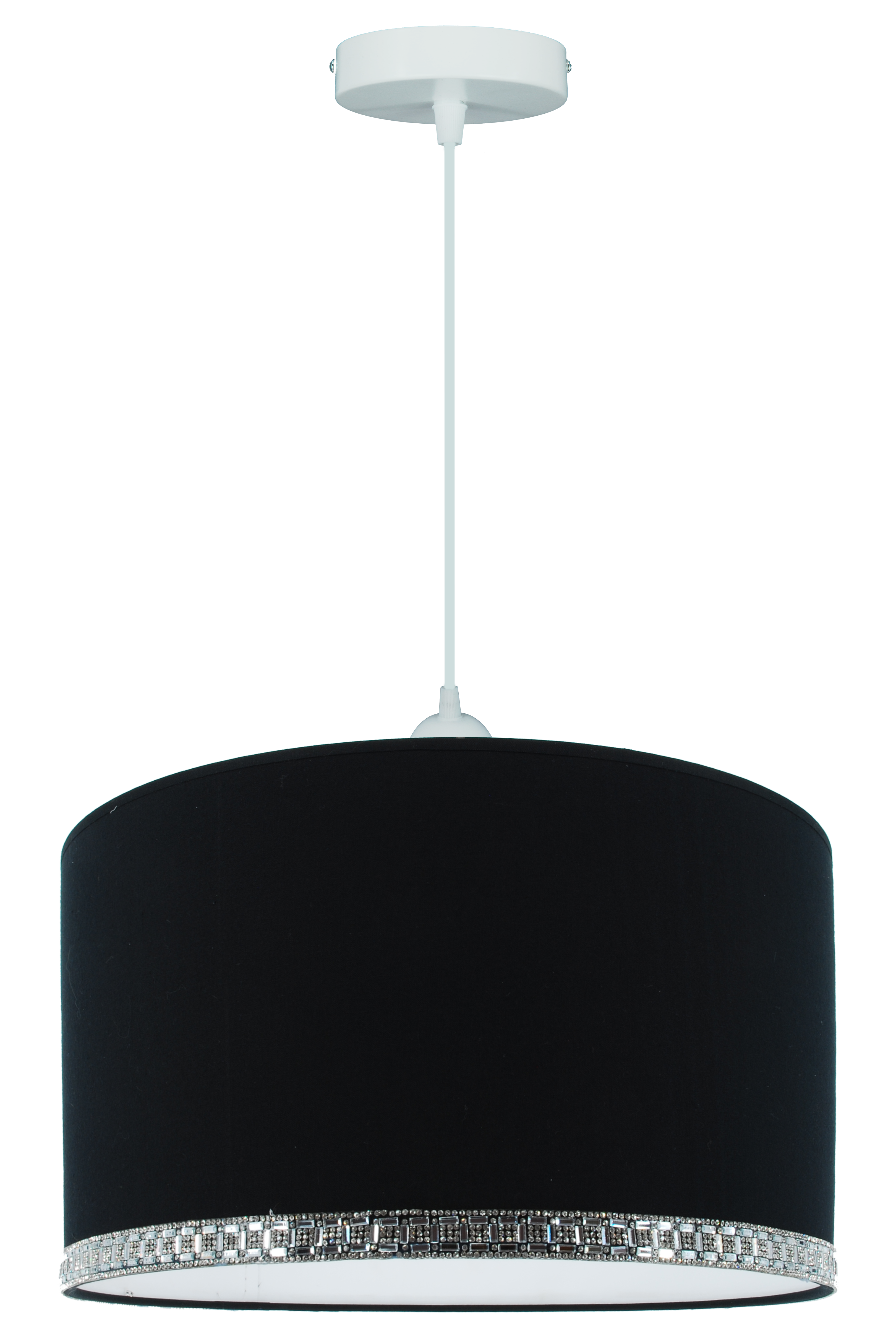 Ekskluzywny design – czarny abażur, biała folia, pas z kryształków