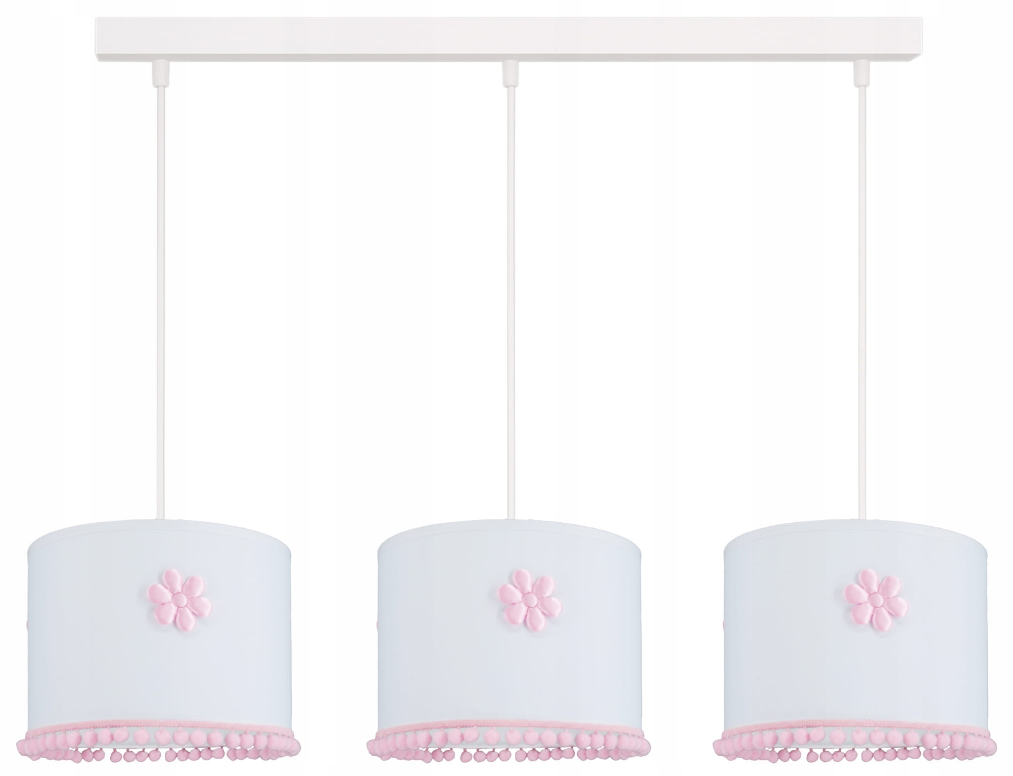 Lampa z abażurami z kwiatkami i pluszowymi pąponami to niezwykłe dzieło sztuki, które przyciąga uwagę swoją urodą i delikatnością.
