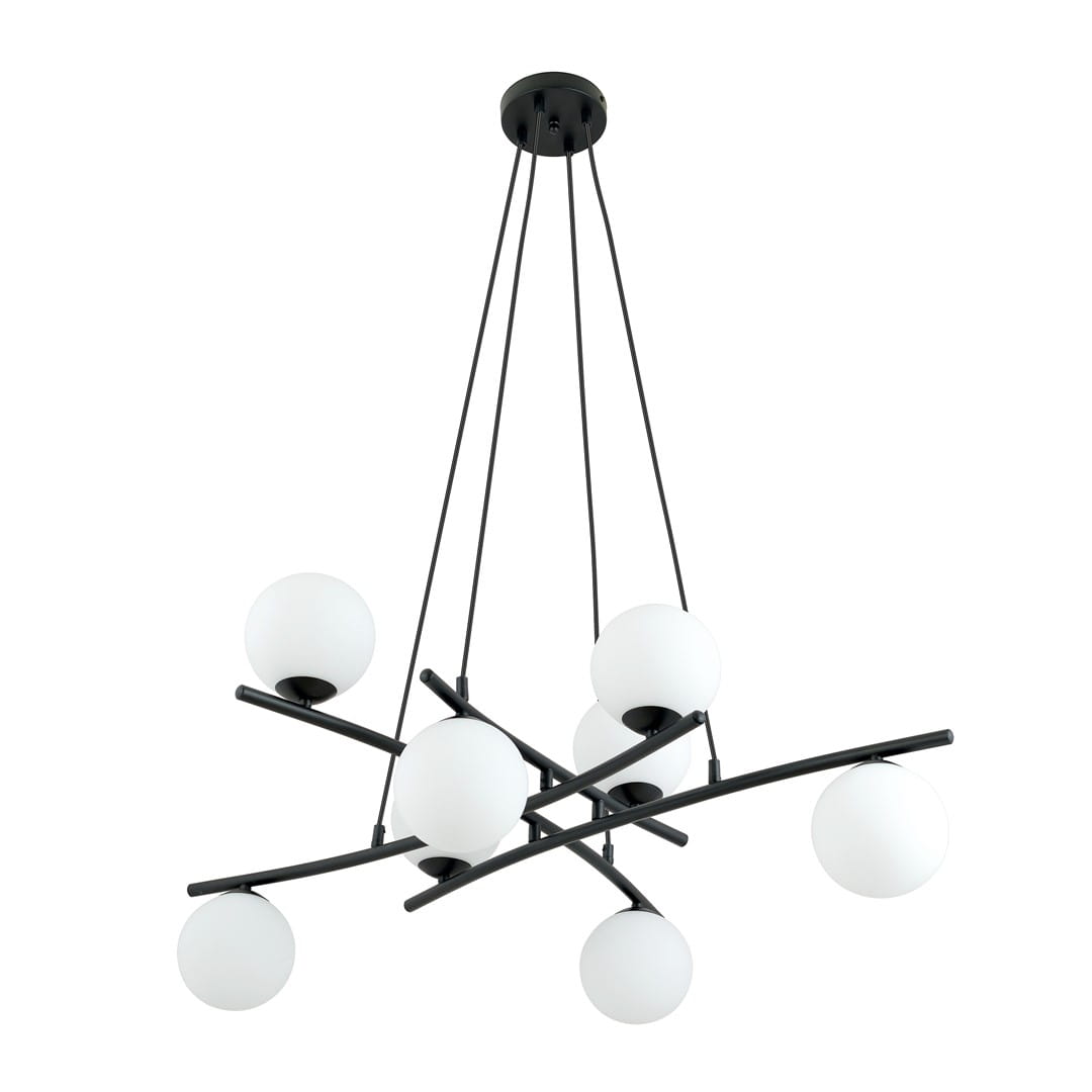 Lampa Wisząca ESSA Czarna Klosz Opal / 8 x E14