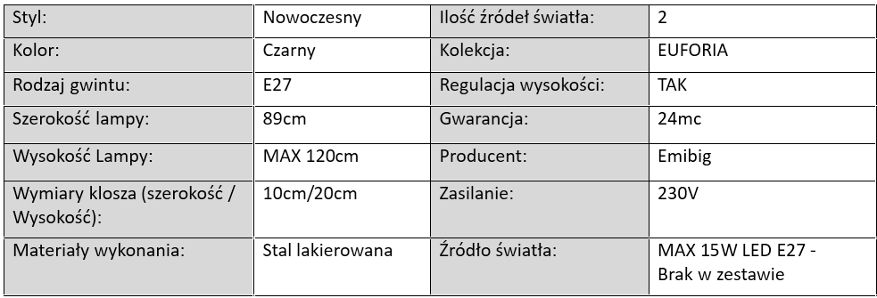 Lampa Wisząca EUFORIA Czarna / 2 x E27
