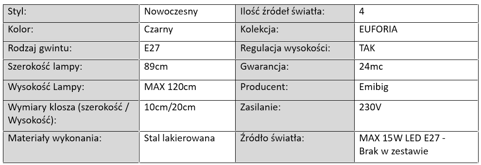 Lampa Wisząca EUFORIA Czarna / 4 x E27