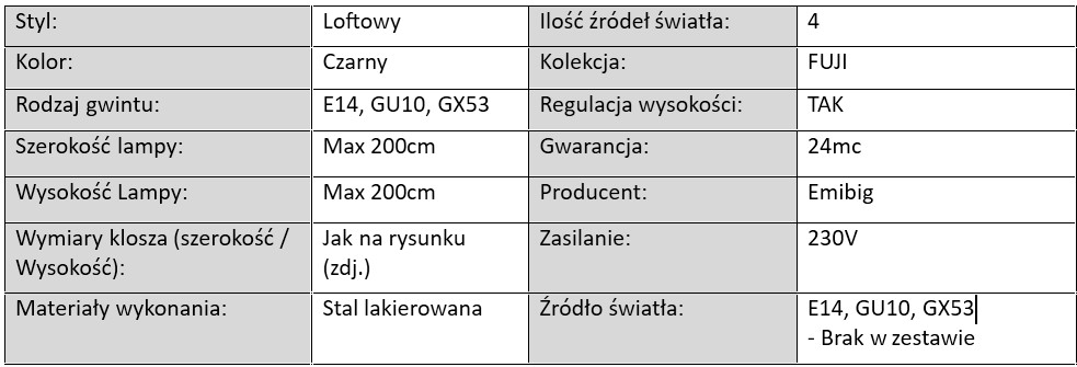 W serii FUJI dostępne są lampy wiszące 4- i 6-punktowe, co pozwala na optymalne doświetlenie zarówno mniejszych, jak i większych pomieszczeń. Dzięki zróżnicowanej długości zawiesi oraz geometrycznym formom kloszy (stożki, kule, tuby), lampy nie tylko emitują przyjemne światło, ale także pełnią funkcję nowoczesnej dekoracji.