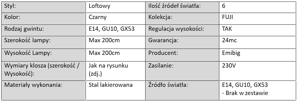 W serii FUJI dostępne są lampy wiszące 4- i 6-punktowe, co pozwala na optymalne doświetlenie zarówno mniejszych, jak i większych pomieszczeń. Dzięki zróżnicowanej długości zawiesi oraz geometrycznym formom kloszy (stożki, kule, tuby), lampy nie tylko emitują przyjemne światło, ale także pełnią funkcję nowoczesnej dekoracji.