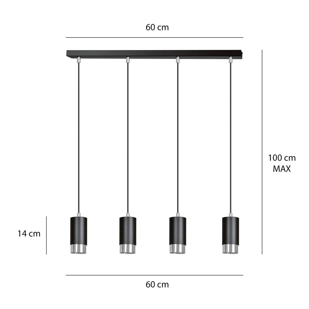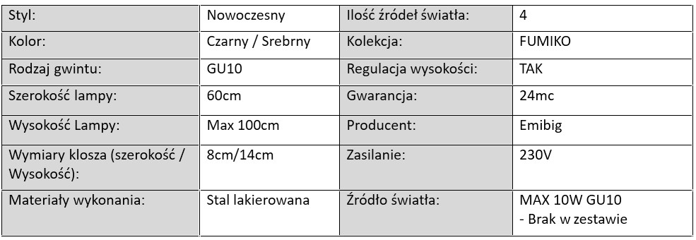 Lampa Wisząca FUMIKO Czarno Srebrna / 4xGU10