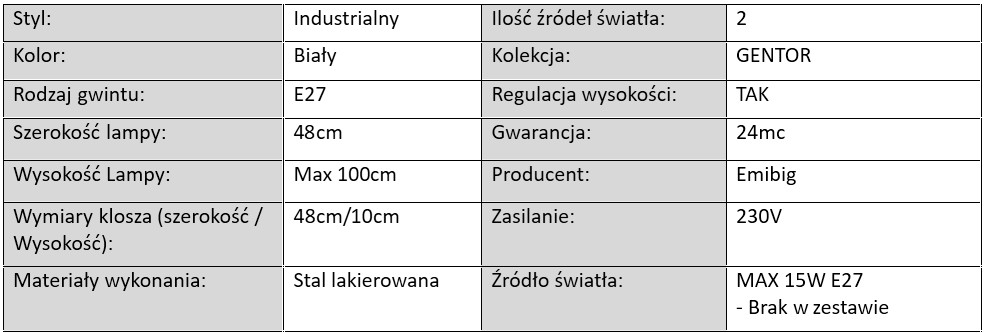 Lampa Wisząca GENTOR Biała / 2xE27