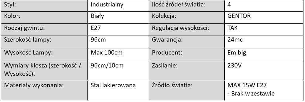 Lampy GENTOR wykonano z wysokiej jakości materiałów, co gwarantuje trwałość i estetykę na lata. Proste linie i staranne wykończenie sprawiają, że stanowią one nie tylko źródło światła, ale również stylowy element dekoracyjny. Wszystkie modele z tej kolekcji przystosowane są do standardowych żarówek z gwintem E27, co pozwala na wybór odpowiedniego oświetlenia pod kątem mocy i barwy światła.