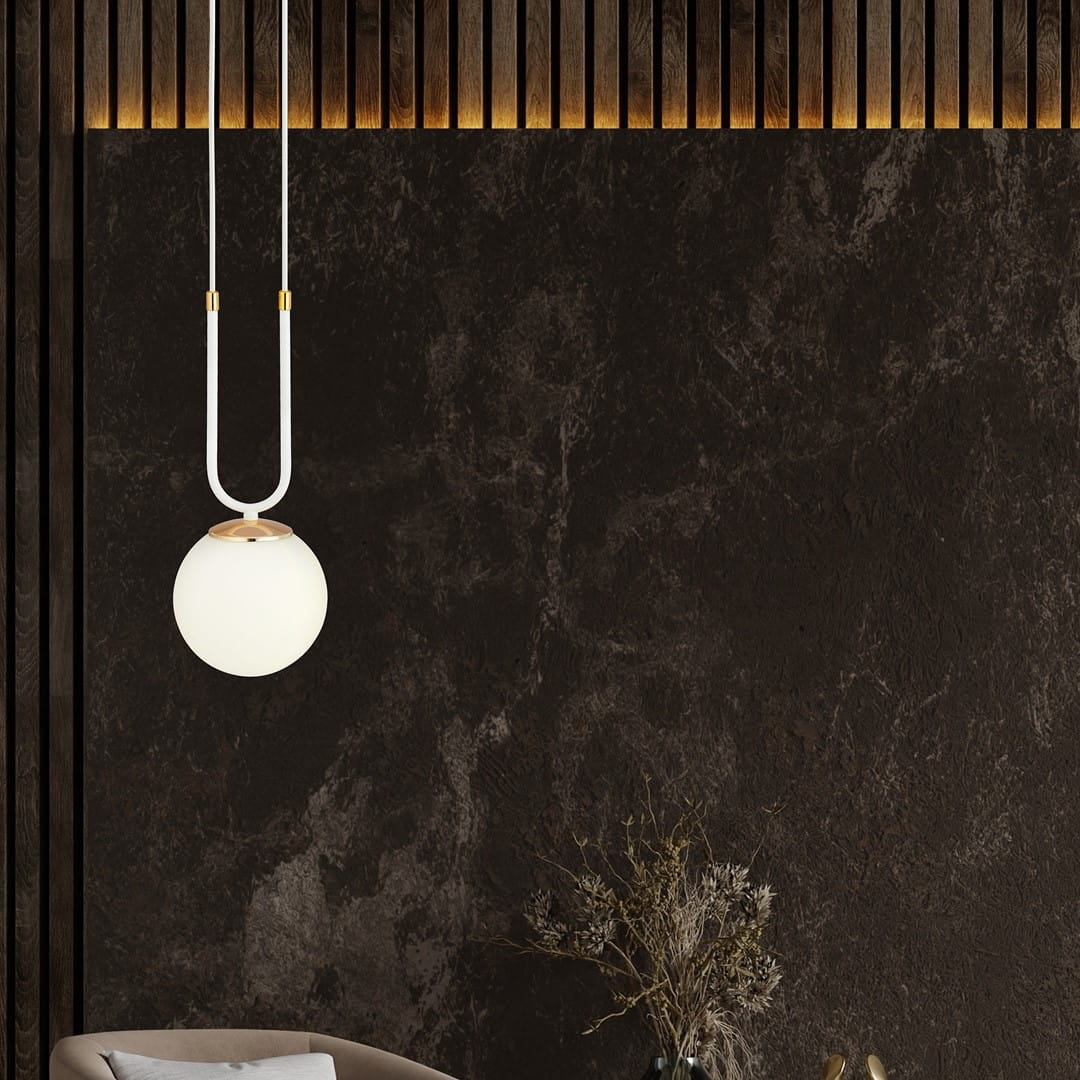 Lampa Wisząca GLAM Biało Złota KLOSZ Opal / 1xE14