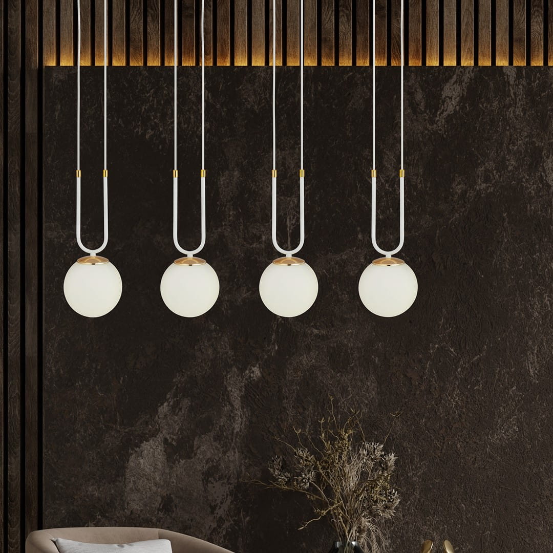 Lampa Wisząca GLAM Biało Złota KLOSZ Opal / 4xE14
